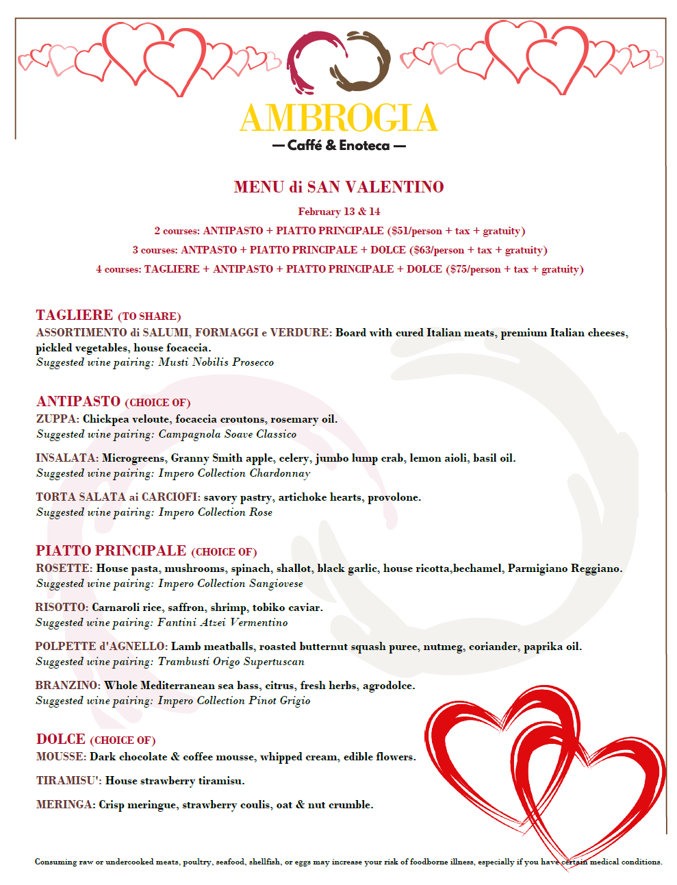 Join us every Wednesday for a $50 prix fixe menu crafted with Italian flavors.